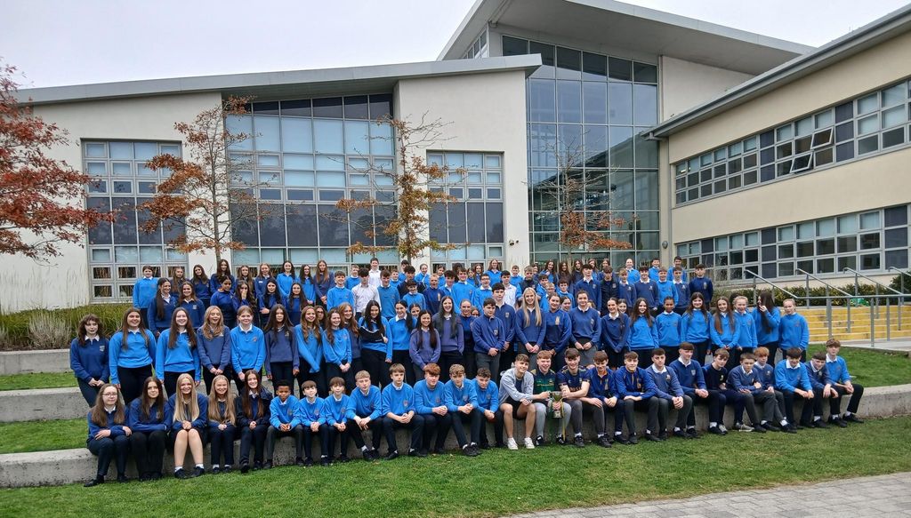 Athboy Community School had some very special visitors drop by today, as three past pupils Liam Kelleher, Eoin Kelleher and Dylan Doherty brought in the Peter McDermott Cup – the Meath Junior Football Championship trophy won by Clann na nGael at the weekend. The trio who were part of the victorious team brought the cup home today to their old school much to the delight of the vast welcoming committee made up of players from every Gaelic games panel in the school. Clann na nGael beat St Vincent’s by two points at Pairc Tailteann on Saturday. The school would like to congratulate the many past-pupils on the championship winning panel and thank Liam, Eoin and Dylan for bringing the silverware in to the students of the school.