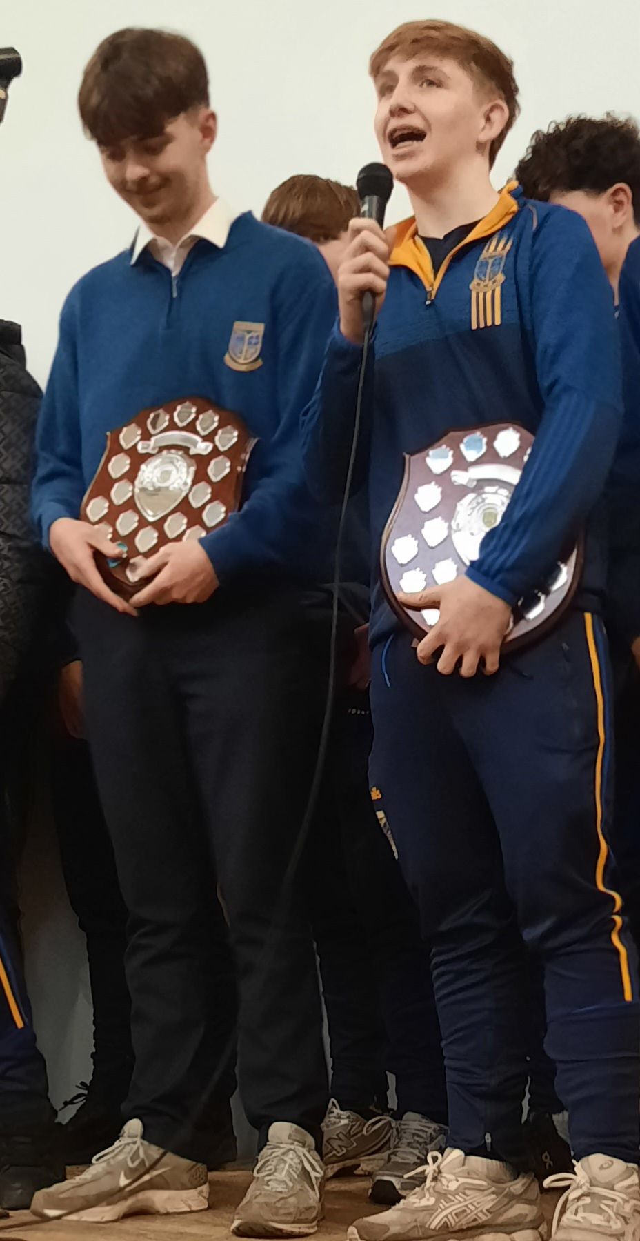 Under 19 Captain Liam Farrell and under 17 captain Briain Smith addressed the crowd and paid tribute to their team-mates and to coach, Mr. Mahon, to whom they dedicated both wins. Mr.Mahon himself spoke about the dedication showed by the boys all season, the numbers at training sessions and the work-ethic and character they have shown in their games.