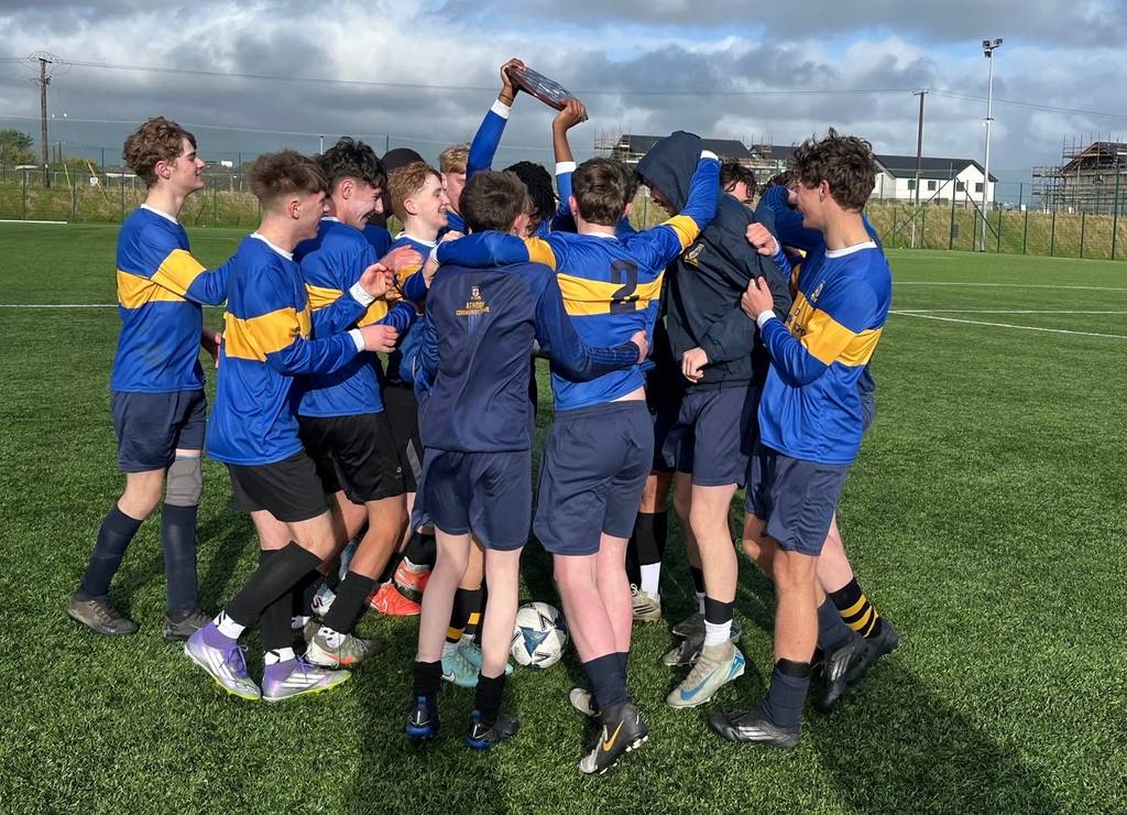 There was huge excitement in the school today when the u17 boys returned with the North-East League trophy after a pulsating win over Beaufort College in the final in Kentstown. It represents a double for Athboy and coach Mr. Mahon, as the u19s had sealed the u19 title only yesterday.