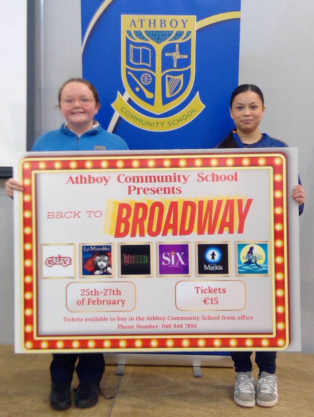 It’s ONE week to go to Athboy C.S presentation of ‘Back to Broadway’, a medley of scenes from well-known musicals which runs in the school for three nights from February 25th-27th. Tickets cost just €15 and will sell fast so to avoid disappointment, buy online or pick up from the front office, Ph. 046-9487894.