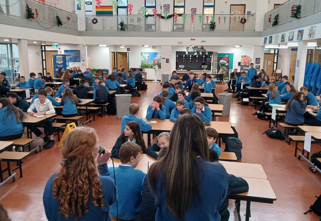 Prefects Neila and Ciara came up with questions for the quiz, which put to test the first years’ Christmas knowledge. It was a close competition and after five competitive rounds the winners were crowned and each of the top three teams received a box of sweets. First place went Caoimhe Heaney, Michael Meekings, Tirnin King and Evie Dosza