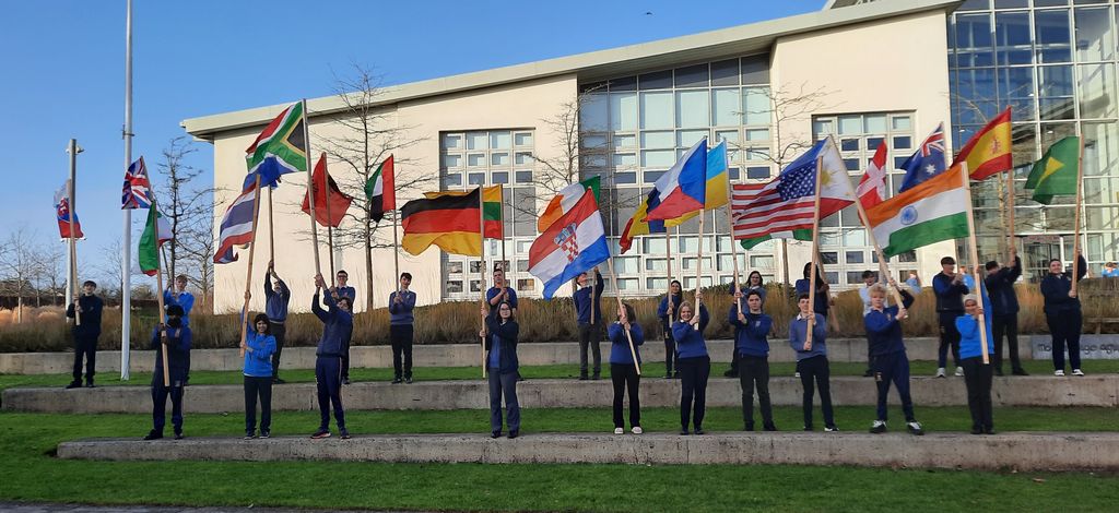 At break time, the celebrations got into full swing with a colourful and entertaining flag ceremony, organised by Ms. Leddy and Mr Magner, where a studentrepresenting each country taking part took up their flag and marched from the library to the General Purpose Area to the tunes of songs from around the world compiled by the Student Council in collaboration with all of the participants who nominated their favourite song to represent their country.