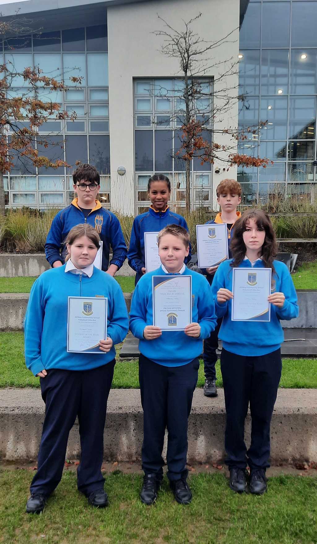 First year winners pictured Back: Paul McGrath-Curran (Patten), Jenny Bradley (Walton), Rian Fleming (Burnell) . Front: Aoibheann Dolan (Lonsdale), Aaron Flanagan (Thomson) and Ophelia Brady (Thomson).