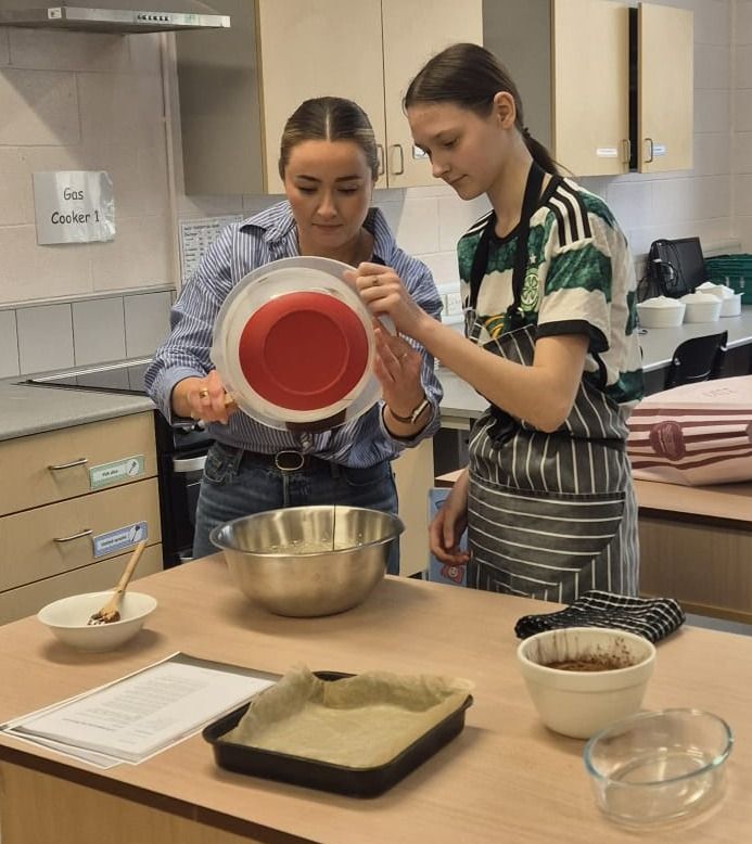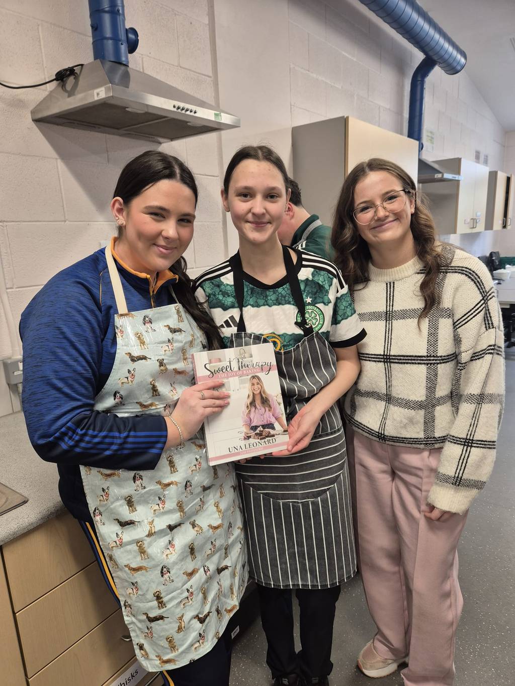 The 5th year students enjoyed listening to Una’s journey and her experiences, and gained many new insights about building and setting up a business, including never giving up no matter how hard the journey is. She also took the time to visit and bake along with some third year Home Economics students and Ms Lynch and Miss McRedmond who were busy trying out some of Una’s recipes.