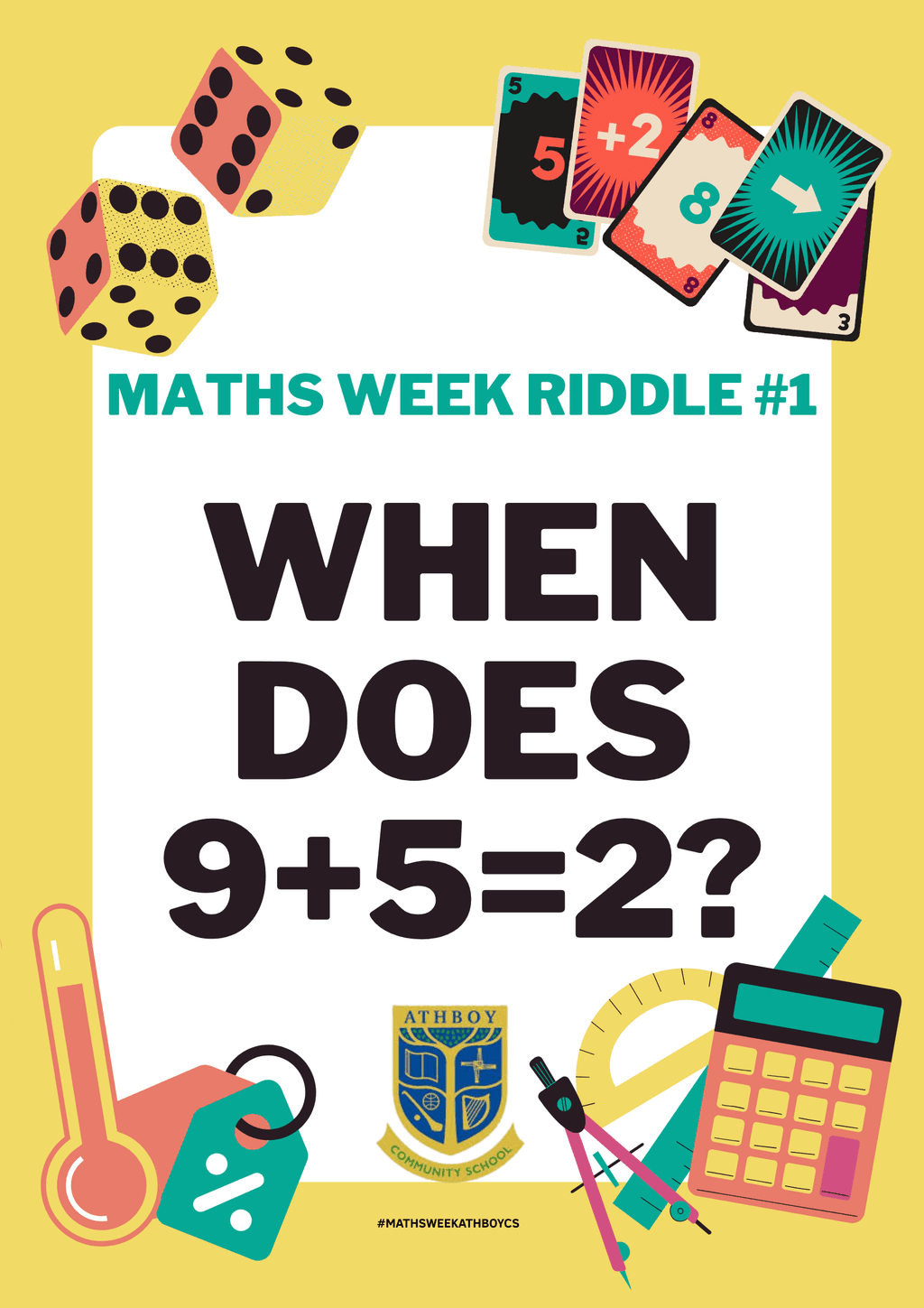 To celebrate Maths Week, we’re bringing maths to the dinner table! Each evening, we’ll post a fun maths riddle for families to discuss together at home.