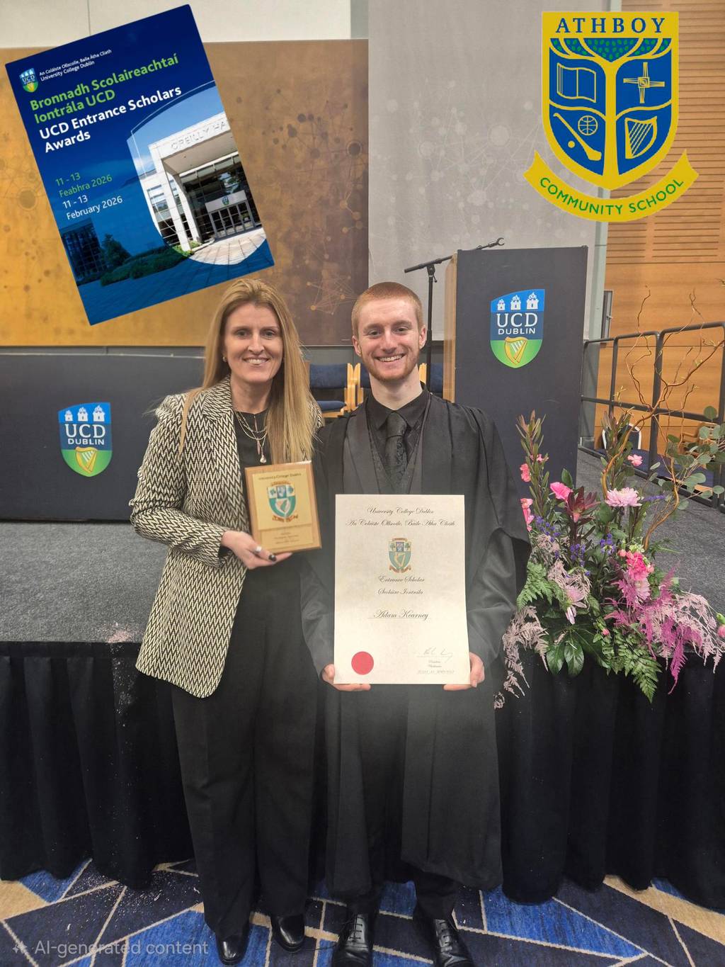 Congratulations to past pupil Adam Kearney from the class of 2025 who collected a U.C.D. Entrance Scholars Award at an awards ceremony in the O’Reilly Hall on the Belfield campus on Friday 13th February last. Adam was accompanied on the day by his proud parents and Principal Ms. Garrihy.